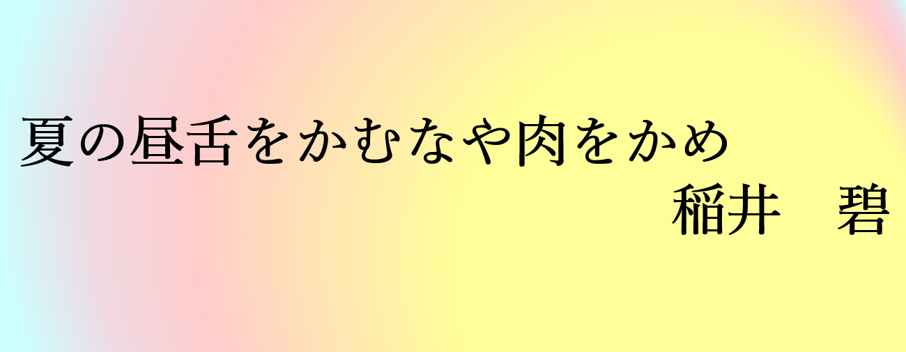 夏の昼、焼肉を楽しんでいて、うっかり舌を噛んでしまったのでしょう。自分の歯に「舌をかむなや肉をかめ」と命令しているのがユニークです。とはいえ、舌も肉体の一部であるという事実。妖しさも共存する一句です。