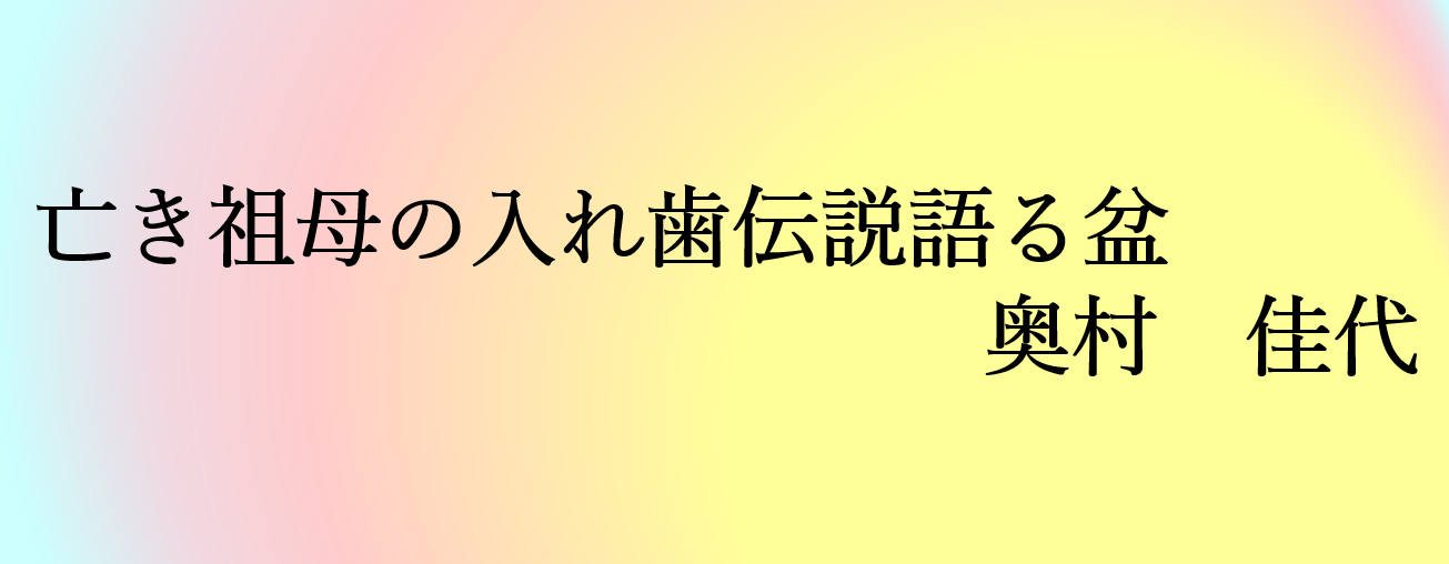 亡き祖母の「入れ歯伝説」は、家族や親戚には定番の逸話なのでしょう。季語「盆」が、一同に集って語り大笑いする場を鮮明に描いてくれます。この伝説は、孫、ひ孫、やしゃ孫へと語り継がれていくのでしょう。