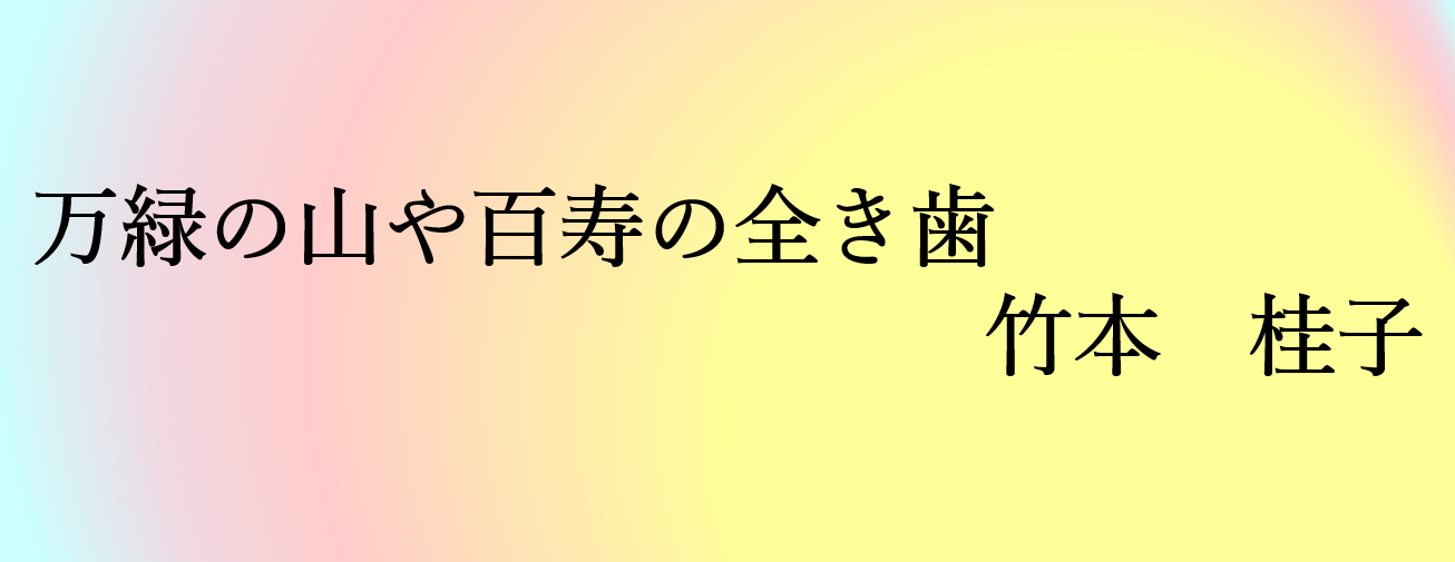 見渡す限り緑一色の山。力強い季語「万緑」と詠嘆の「や」により、全山の緑が迫って来るようです。場面が切り替わって大写しにされるのは、百歳を迎えてなお完璧に揃った歯。万緑に負けぬぐらい「全き歯」です。