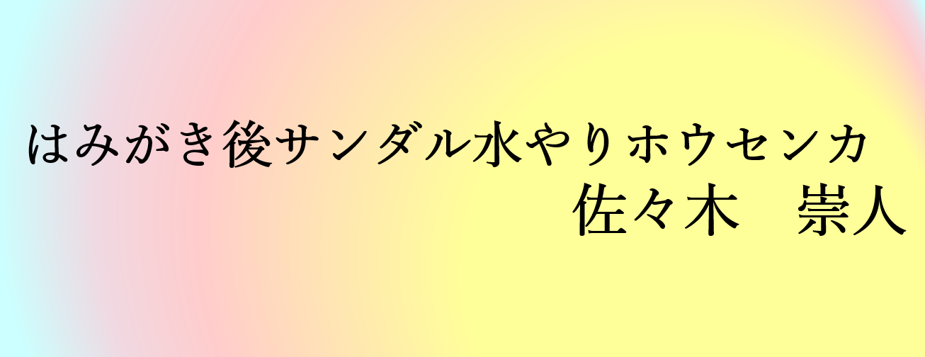 起こったことを名詞で並べてできた一句です。はみがき後に、サンダルを履いてホウセンカに水やりするのが日課になっているのでしょう。大事に世話を続けた後に、美しく咲くだろうホウセンカも目に浮かぶようです。
